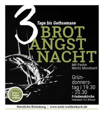 Vielfältige Veranstaltungen rund um das Thema: Sieben Wochen ohne Härte. Das ist unser Osterpaket für euch. Themen-Gottesdienste, eine Rastplatz-Staffel, Durchs-Dunkel-Abendmahl, Osterfrühstück ... wir freuen uns auf viele Besucher. Mehr ...